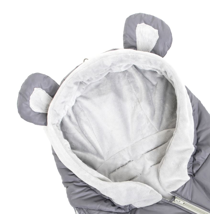 Uroczy dodatek w formie uszek wyróżnia śpiworek dla tle konkurencji. Wykończenie kapturka jest delikatne, przyjemne w kontakcie ze skórą twarzy.
