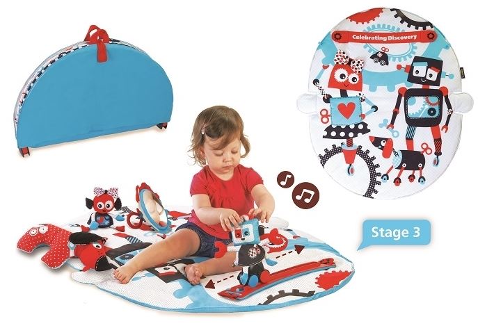 Kiedy dziecko potrafi już samodzielnie siedziec na macie, potrafi kontrolowac oraz cieszyć się wszystkimi funkcjami poruszającego się samochodu, przysuwa się do niego, zatrzymujac go rączką (samochodzik powróci do jazdy, jak tylko dziecko zwolni uścisk), zdejmując i nakładając różne postaci na pojazd. Dziecko może również zatrzymywać lub uruchamiac pojazd przyciskiem. Zabawa na macie zachęca do odkrywania, budzi ciekawość, uczy przyczyny