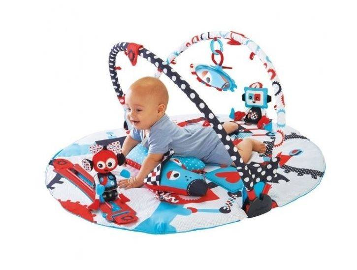 Podczas pierwszych tygodni dziecka, rekomendowane jest aby leżało tuż pod ramionami łuków, tak aby panel Magic Motion Track™ był prostopadły do jego główki. W tej pozycji , samochodzik i przytwierdzona do niego zawieszka porusza się do przodu i do tyłu po linii wzroku dziecka. W kolejnym bardziej zaawansowanym etapie dziecko może lezeć na przeciwko panelu Magic Motion Track co sprawia, że zaczyna ono śledzić jego ruchy z większą uwagą. Zabawa na macie poprawia zdolność skupienia, zdolność wodzenia wzrokiem oraz koordynację ręka-oko.
