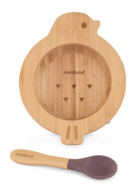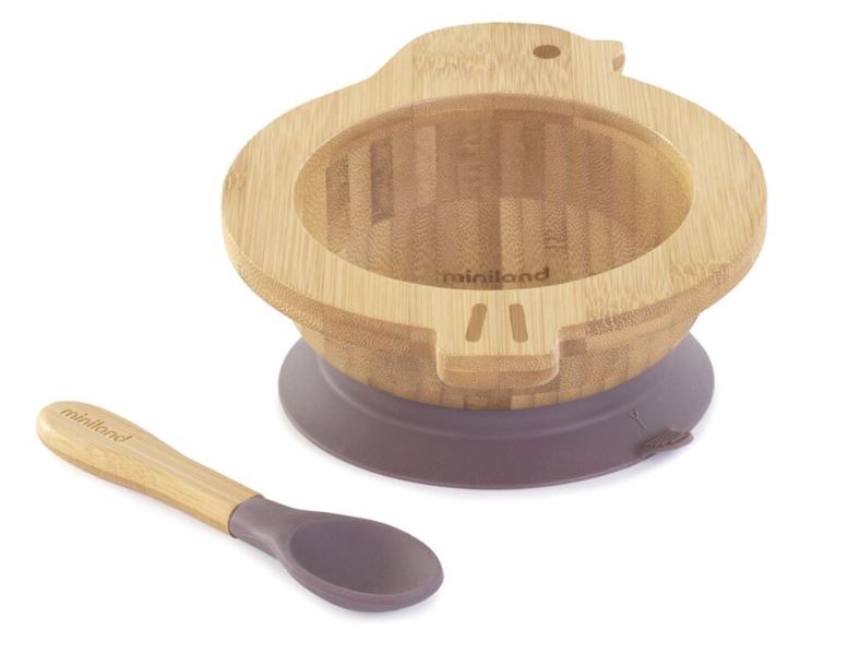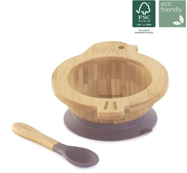 Miniland Eco Friendly Drewniana Miseczka z Przyssawką i Łyżeczką