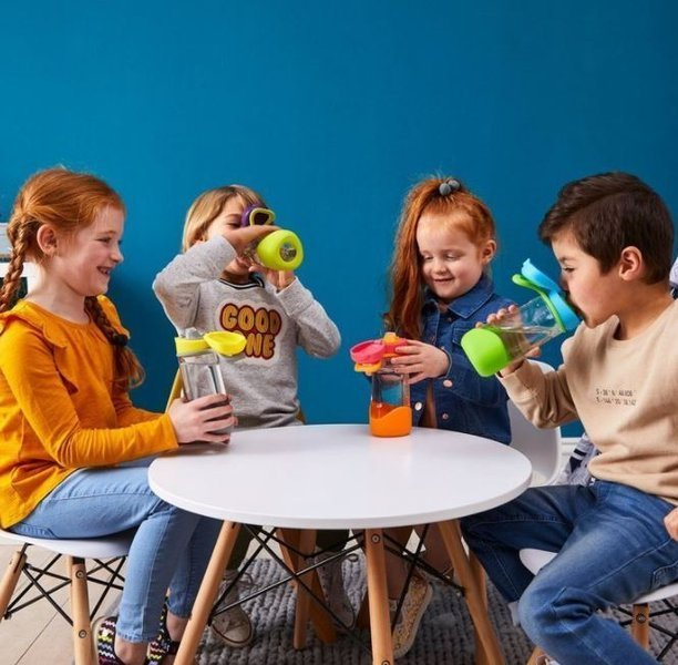 Otwarta klapka nie będzie zawadzała pijącemu maluszkowi dzięki sprytnej blokadzie zamykania. Elastyczny uchwyt pozwoli wygodnie nieść bidon czy przytroczyć go do plecaczka. Zabezpieczenie dna butelki, wykonane z silikonu chroni je przed uszkodzeniami oraz zapewnia stabilność, gdy malec odstawi butelkę.
