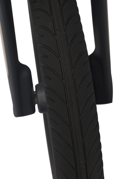 Komfort jazdy zapewniają przednie amortyzatory, gumowe elastyczne bezdętkowe koła oraz miękkie siodełko wypełnione pianką wysokoelastyczną. Opony posiadają bieżnik, zapewniający dobrą przyczepność.