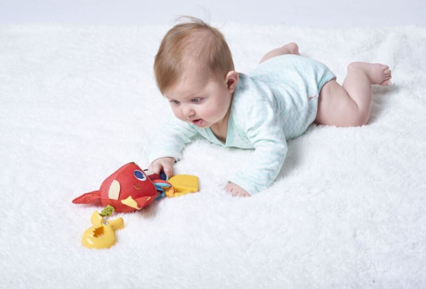 Upewnij się, że umieszczasz zabawkę w zasięgu rąk dziecka - dzieci będą wyciągać ręce, aby dotknąć zabawkę, powodując jej poruszanie się i kołysanie.4-6 months