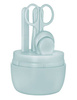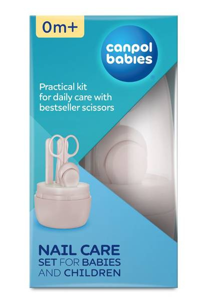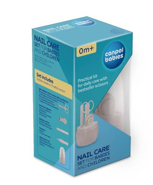 Kompletny zestaw do paznokci dla niemowląt zapakowany w praktyczne wodoodporne etui, które umożliwia higieniczne przechowywanie oraz przenoszenie. Zestaw do obcinania paznokci dla niemowląt składa się z 4 elementów – nożyczki, poręczny obcinacz do paznokci, delikatny pilniczek i pęseta. Bestsellerowe nożyczki ze stali nierdzewnej i cążki pomogą skutecznie i bezpiecznie obciąć paznokcie dziecku. Zaokrąglone końcówki nożyczek zapobiegają skaleczeniu. Delikatny pilniczek pomoże usunąć nierówności paznokcia chroniąc dziecko przed zadrapaniem. Canpol zestaw do paznokci dla niemowląt i dzieci jest dostępny w dwóch wersjach kolorystycznych. Canpol zestaw do pielęgnacji paznokci dla niemowląt jest bezpieczny dla dzieci od pierwszych dni życia.