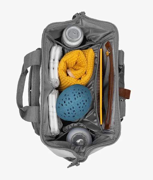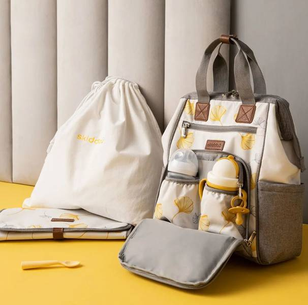 W plecaku znajdziemy liczne przegródki, termiczne i wodoodporne kieszonki, które zapewniają rodzicom możliwość przygotowania się na każde okoliczności. W zestawie znajdziemy bawełniany woreczek, oraz matę do przewijania dziecka.