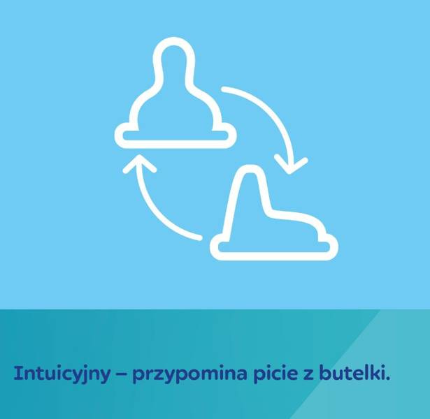Kubek jest intuicyjny, przypomina picie z butelki, umożliwiając szybkie i łatwe przejście z butelki do kubka.