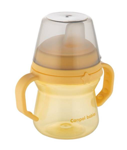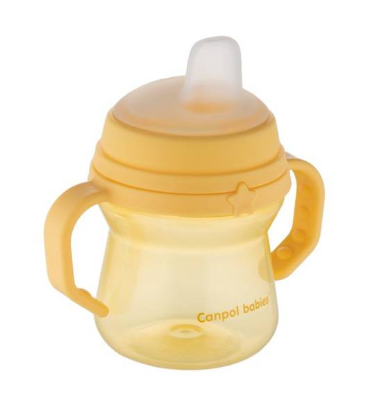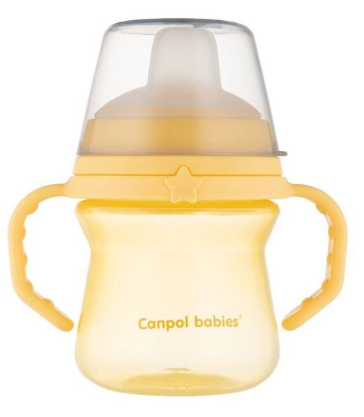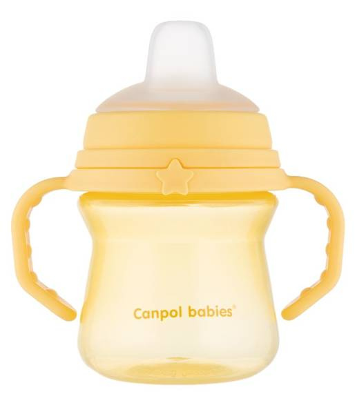 Doskonały do nauki samodzielnego picia po 6 miesiącu życia, dzięki niekapiącemu ustnikowi, który zapobiega rozlaniu. Niekapiący ustnik nie przecieka nawet, gdy dziecko przechyli czy upuści kubek. Kubek jest intuicyjny, przypomina picie z butelki, umożliwiając szybkie i łatwe przejście z butelki do kubka. Wyjątkowo miękki ustnik jest wykonany z delikatnego silikonu, bezpiecznego dla wrażliwych dziąseł dziecka. Kubek jest lekki o ergonomicznej, profilowanej budowie. Wygodne uchwyty ułatwiają dziecku trzymanie go w malutkich rączkach. Niewielka ilość elementów sprawia, że jest łatwy do składania i mycia – kubek nie ma zbędnych zakamarków, dzięki czemu można szybko umyć wszystkie części, a ustnik wyparzyć. Canpol kubek niekapek 150ml z silikonowym ustnikiem jest transparentny, co pozwala kontrolować ilości przyjmowanych płynów przez dziecko. Żółty kubek niekapek Canpol babies 150ml FirstCup posiada szczelną osłonkę, która chroni ustnik przed zabrudzeniem. Żółty kubek niekapek Canpol babies 150ml FirstCup z silikonowym ustnikiem jest idealny dla najmłodszych dzieci już od 6 miesiąca życia. W ofercie jest dostępny wymienny silikonowy ustnik.