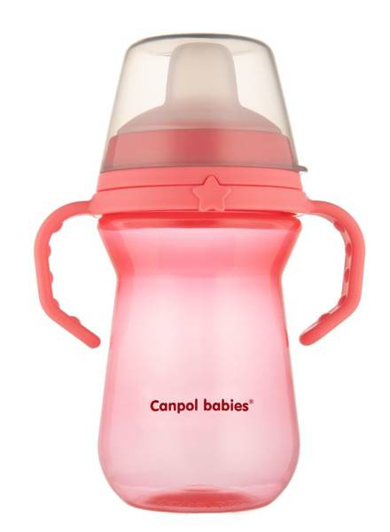 Doskonały do nauki samodzielnego picia po 6 miesiącu życia, dzięki niekapiącemu ustnikowi, który zapobiega rozlaniu. Niekapiący ustnik nie przecieka nawet, gdy dziecko przechyli czy upuści kubek. Kubek jest intuicyjny, przypomina picie z butelki, umożliwiając szybkie i łatwe przejście z butelki do kubka. Wyjątkowo miękki ustnik jest wykonany z delikatnego silikonu, bezpiecznego dla wrażliwych dziąseł dziecka. Kubek jest lekki o ergonomicznej, profilowanej budowie. Wygodne uchwyty ułatwiają dziecku trzymanie go w malutkich rączkach. Niewielka ilość elementów sprawia, że jest łatwy do składania i mycia – kubek nie ma zbędnych zakamarków, dzięki czemu można szybko umyć wszystkie części, a ustnik wyparzyć. Canpol kubek niekapek 250ml z silikonowym ustnikiem jest transparentny, co pozwala kontrolować ilości przyjmowanych płynów przez dziecko. Różowy kubek niekapek Canpol babies 250ml FirstCup posiada szczelną osłonkę, która chroni ustnik przed zabrudzeniem. Różowy kubek niekapek Canpol babies 250ml FirstCup z silikonowym ustnikiem jest idealny dla najmłodszych dzieci już od 6 miesiąca życia. W ofercie jest dostępny wymienny silikonowy ustnik.