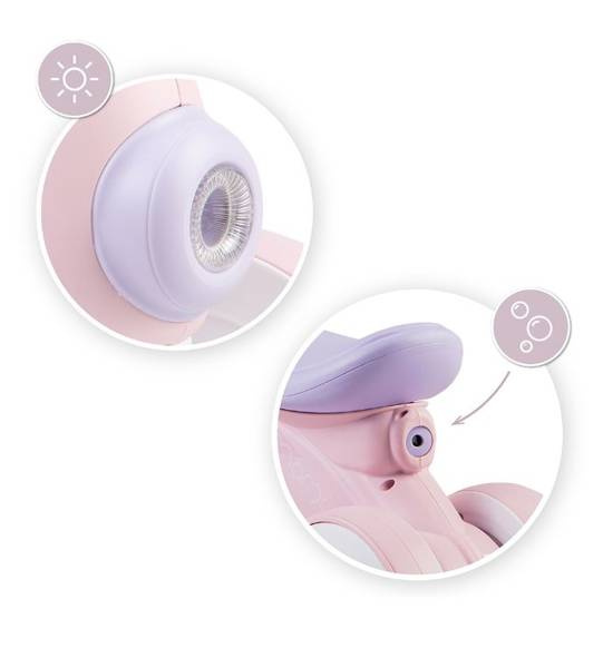 To jest absolutny hit i nowość! Rowerek posiada funkcję wytwarzania baniek! Uruchomienie ich odbywa się poprzez naciśnięcie jednego przycisku jest więc banalnie proste nawet dla 2latka! Tę funkcję jestem pewna, że pokochają młodsi, ale też starsi! Bo kto nie lubi baniek?!
