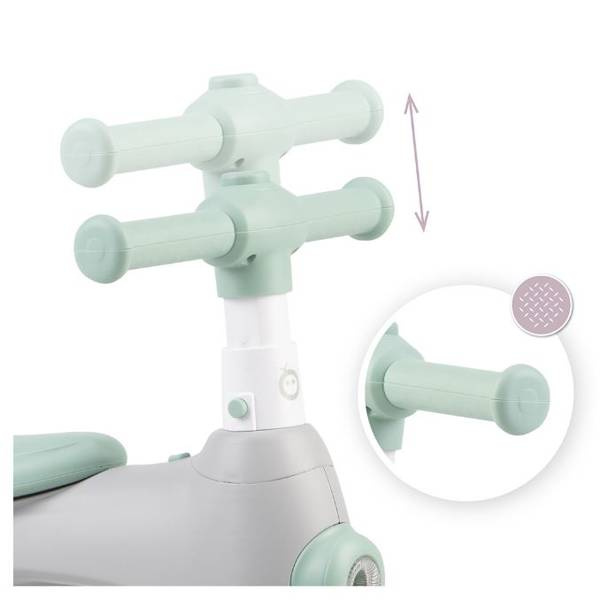 MoMi TOBIS jest nie tylko atrakcyjny ze względu na funkcje, ale również bardzo praktyczny i bezpieczny. Na kierownicy umieszczone są antypoślizgowe nakładki, które wzmacniają chwyt dziecka. Kierownica ma też 3-stopniową możliwość regulacji, dzięki czemu dopasujesz jej wysokość do potrzeb dziecka.