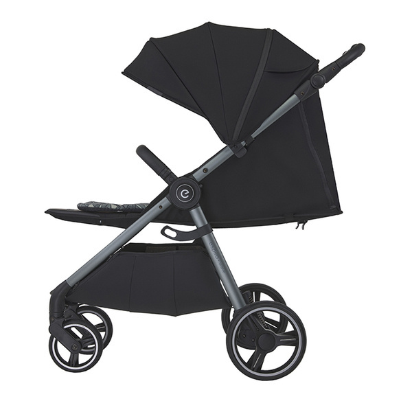 Spacerówka posiada obszerną budkę, którą można powiększyć do rozmiarów XL, dzięki czemu świetnie chroni przed słońcem i wiatrem. Warto dodać, że budka jest wodoodporna i wykonana z materiału z filtrem UPF50+.