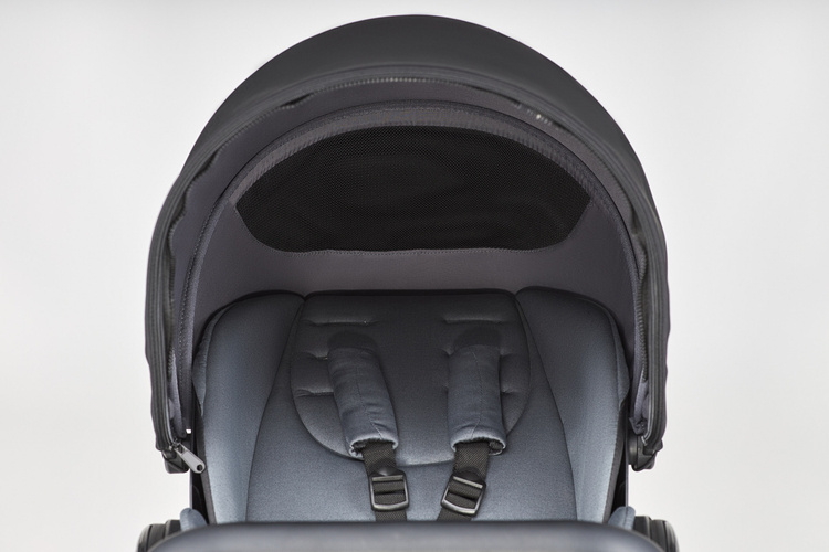 Breathing System- wózek wyposażony jest w złożony system cyrkulacji powietrza, który zapewnia wentylację w dolnej części gondoli oraz w budce gondoli, w materacu, w podnóżku i budce siedziska.
