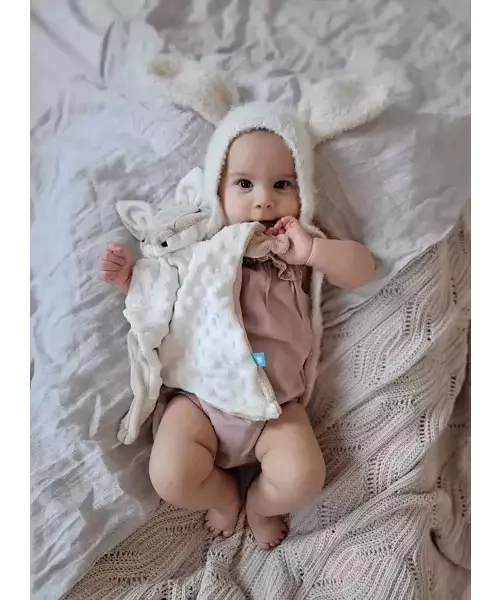 Szumiący Lisek Dou Dou to połączenie szumiącego misia i małego kocyka. Świetnie sprawdzi się od pierwszych chwil życia maluszka. Szum wyciszy noworodka a miły kocyk utuli do snu. Kocyk przytulanka posłuży maluszkowi przez długie miesiące. Na początku jako pomocnik w zasypianiu a po kilku tygodniach stanie się pierwszą zabawką malucha.