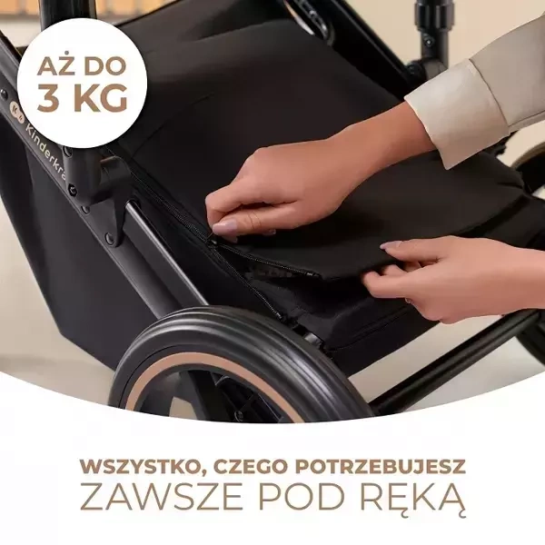 Wózek został wyposażony w zamykany kosz pod siedziskiem, dzięki któremu nie musisz się martwić, że podczas spaceru zgubisz zakupy czy potrzebne akcesoria. Kosz jest pojemny i ma obciążenie aż do 3 kg.
