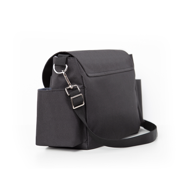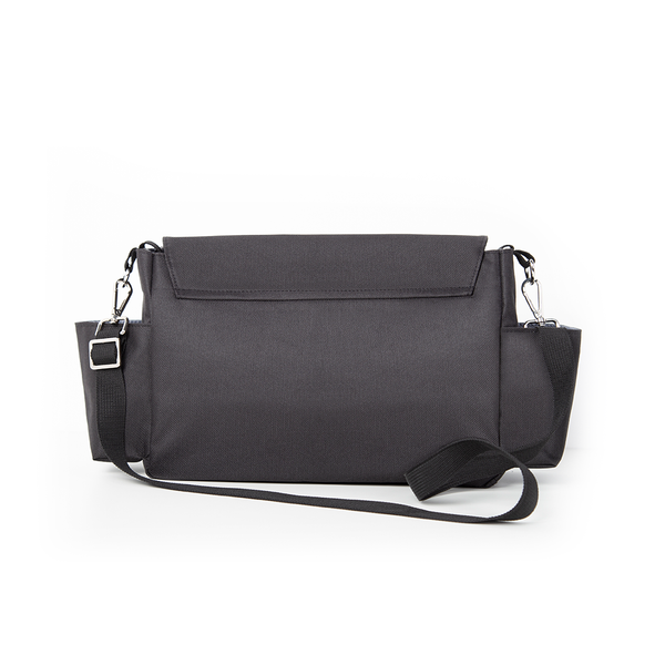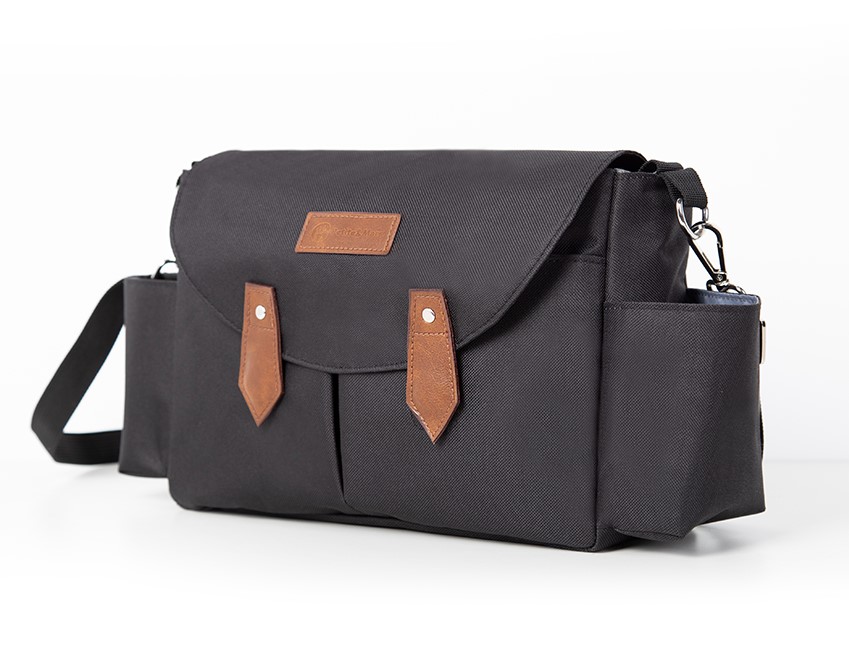 Organizer do wózka z bocznymi regulowanymi paskami zapinanymi na rzepy jest odpowiedni do większości wózków. Wykonany został z wytrzymałego poliestru, a piękne detale z ekoskóry dodają mu elegancji. Organizer ma możliwość noszenia go na ramieniu, dzięki odpinanemu długiemu paskowi. Przestronne wnętrze z siedmioma kieszeniami w tym dwoma przeznaczonymi na napoje daje możliwość wygodnego aranżowania. Duża komora środkowa i dwie oddzielne przednie kieszenie zamykane są na klapkę z magnetycznymi zatrzaskami. Jedna z wewnętrznych kieszeni posiada termoizolację. Organizer pewnie i mocno trzyma się na rączce wózka.