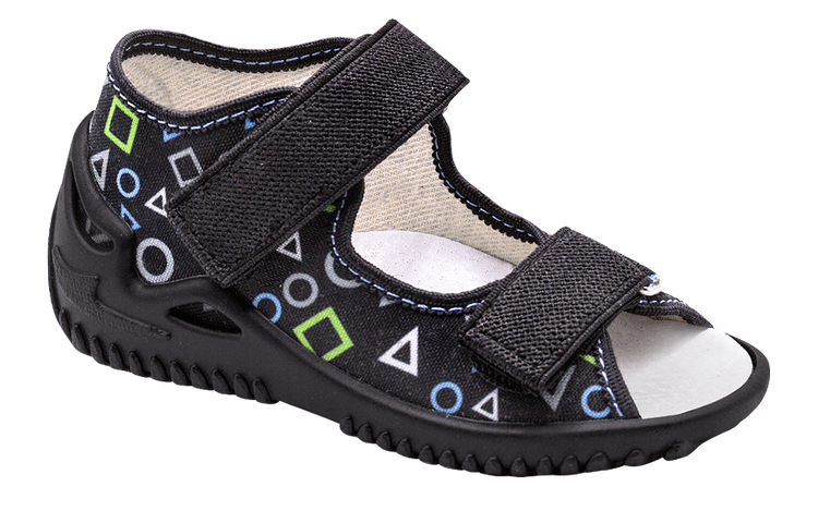 Obuwie dziecięce zapinane na rzep z przewiewnym przodem doskonałe na upalne dni. Wnętrze buta wykonane z naturalnej tkaniny bawełnianejUsztywniana piętka. Elastyczna podeszwa wykonana z bezftalanowego tworzywa. Wkładka wykonana z naturalnej skóry oraz elastycznej pianki. Pianka zawiera węgiel aktywny. Skóra absorbuje nadmiar wilgoci a węgiel aktywny pochłania nieprzyjemne zapachy zapewniając stopie uczucie świeżości.