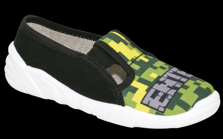 Obuwie chłopięce wsuwane. Buty wykonane z naturalnej bawełny. Usztywniana piętka. Spód wykonany z białego bezftalanowego tworzywa. Wkładka wykonana z naturalnej skóry oraz elastycznej pianki zawierającej węgiel aktywny. Skóra absorbuje nadmiar wilgoci, a węgiel aktywny pochłania nieprzyjemne zapachy zapewniając stopie uczucie świeżości.