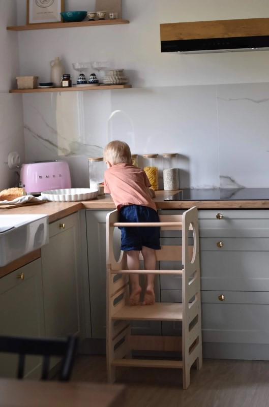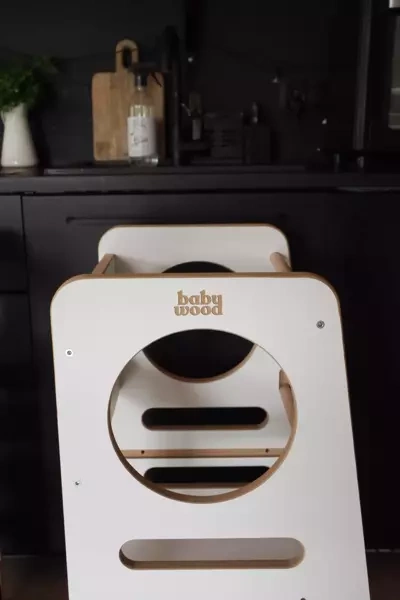Jeśli szukasz sposobu na włączenie swojej pociechy w domowe aktywności, to Kitchen Helper od Baby Wood będzie świetnym rozwiązaniem. To drewniany podest z zabezpieczeniem, dzięki któremu Wasz szkrab będzie mógł uczyć się „dorosłych” czynności i z pewnością poczuje się z tym doskonale. Produkt od BabyWood łączy w sobie trzy funkcje: podnóżka, podestu i kuchennego pomagacza, znajdzie więc zastosowanie na co dzień, podczas wspólnych zabaw i czynności.