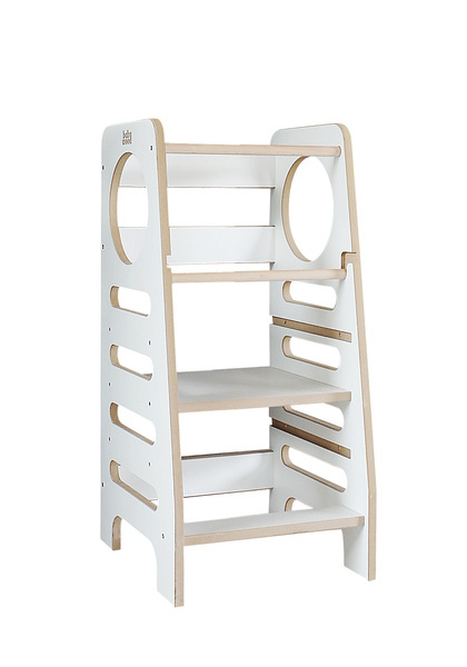 Konstrukcja Kitchen Helpera została dobrze przemyślana po to, żeby jak najlepiej służył Waszemu maleństwu. Zaokrąglone ranty zmniejszają ryzyko skaleczenia się, a specjalny szczebelek zabezpiecza dziecko przed wypadnięciem czy poślizgnięciem. Dodatkową zaletą jest możliwość regulacji wysokości podnóżka- możesz wybrać jeden z trzech poziomów, dopasowując Kitchen Helper do wzrostu dziecka i blatu kuchennego. To także pewność, że pomocnik posłuży Wam przez lata, "rosnąc" razem z dzieckiem. Kolejnym ułatwieniem jest schodek, który ułatwia dziecku wejście na podest.
