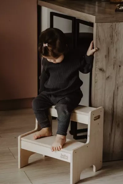 Złożony z dwóch stopni podest, ułatwi dziecku sięganie po to, co do tej pory, ze względu na niewielki wzrost, nie było dla niego dostępne.