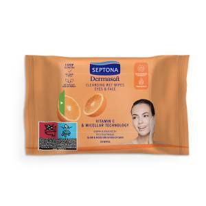 Septona Dermasoft Oczyszczające Chusteczki Nawilżane z Witaminą C i Technologią Micelarną Do Twarzy i Oczu 20szt.