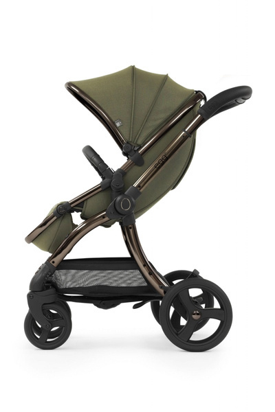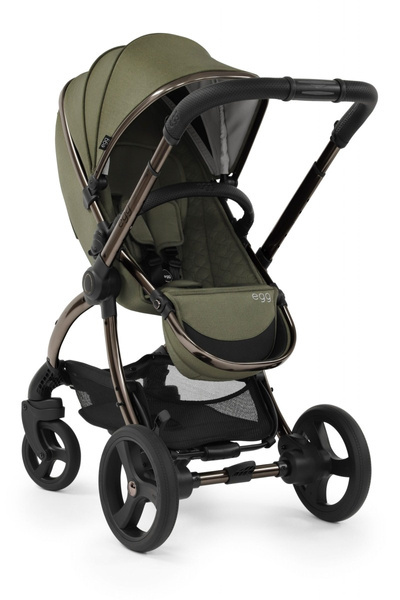 Nowy design stelaża Egg2 posiada regulowaną rączkę o długości 99 – 111cm i został ozdobiony odnowionym emblematem Egg. Składany jedną ręką stelaż Egg2 jest kompaktowy i wolnostojący po złożeniu, a jego rączka nigdy nie opiera się o ziemię.