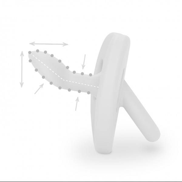 Smoczek z łatwością dopasowuje się do podniebienia, zostawiając językowi wystarczającą ilość miejsca.