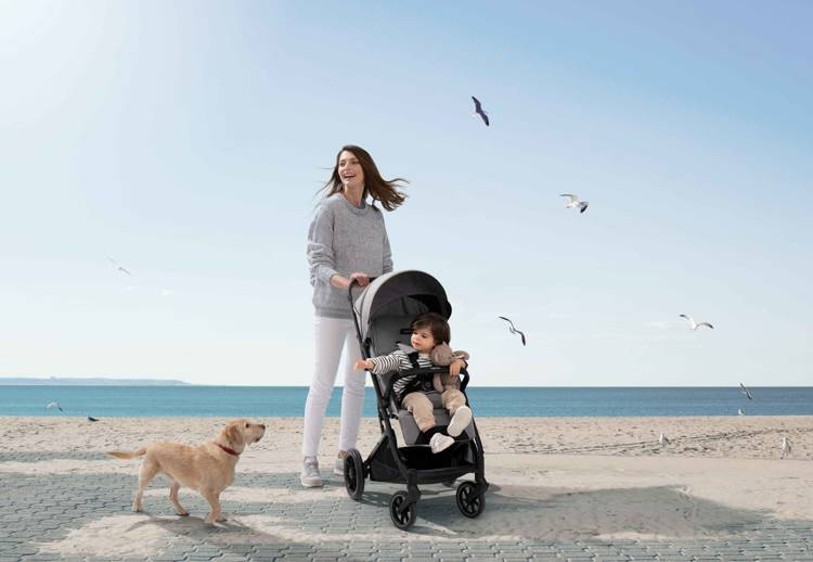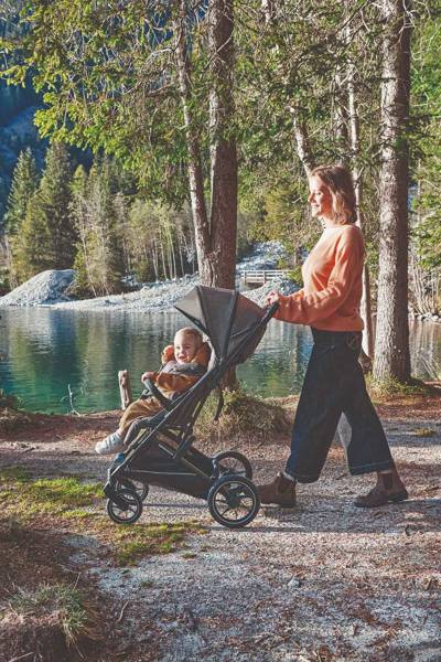 Oparcie odchyla się od pozycji pionowej do pozycji w pełni leżącej (170°), a regulowany podnóżek podtrzymuje nogi nawet w pozycji do spania. Wysuwany kaptur chroni dziecko, całkowicie je zakrywając, aby zapewnić mu miejsce do relaksu nawet w trakcie przygody.