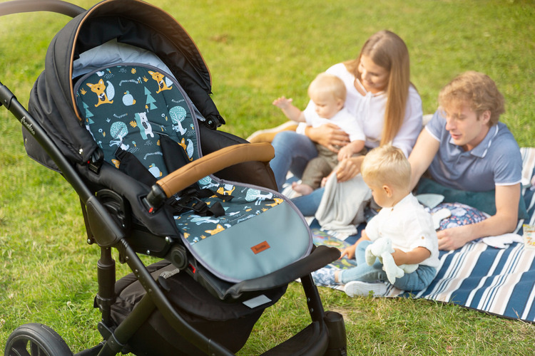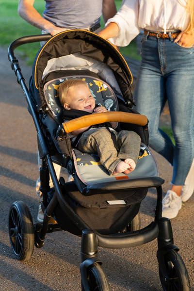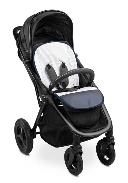 Dzięki uniwersalnej wkładce do wózka z wodoodpornym podnóżkiem, każdy może zmienić wygląd swojego wózka spacerowego.