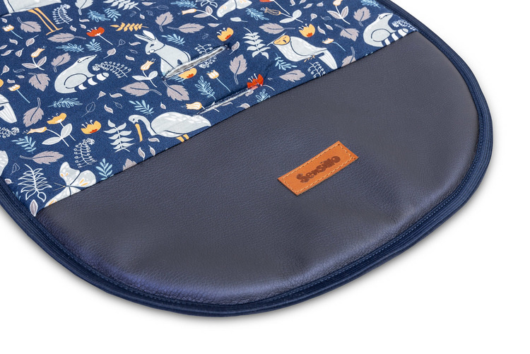 Po obu stronach na dole dodaliśmy łatwą w czyszczeniu kolorową ekoskórę. Wkładka pomaga utrzymać wnętrze wózka w czystości oraz podnosi komfort podróżowania.