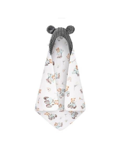 Środek kocyka wypełniony jest antyalergiczną włókniną wysokopuszystą silikonową. Zapewnia ona dziecku ciepło oraz wygodę podczas użytkowania.