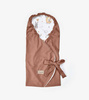 Otulacz posiada wycięcie na pasy 3 i 5 punktowe, dlatego sprawdzi się w fotelikach samochodowych, nosidełkach oraz jak śpiworek w gondoli wózka.