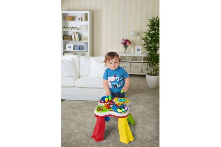 W funkcje stolika zostały wplecione piosenki pomagające w nauce liczb, liter, nazw instrumentów muzycznych, zwrotów oraz wiele innych. Dzięki temu dziecko podświadomie zapamiętuje w kolejności czy to alfabet, czy cyferki. Łącznie stolik dysponuje ponad 60 słowami, piosenkami, zwrotami.