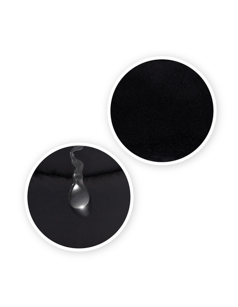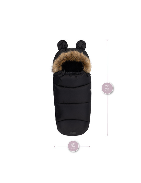 Wnętrze śpiworka wykończone jest pluszowym, futerkowym materiałem, który doskonale izoluje od zima i sprawi, że Maluszkowi zawsze będzie ciepło. Zewnętrzna tkanina jest natomiast wodoodporna, chroni więc przed deszczem i śniegiem i nie przepuszcza wiatru.