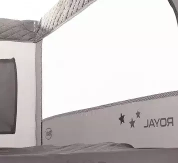 Wielofunkcyjne łóżeczko turystyczne Royal z funkcją kojca to duże ułatwienie podczas wyjazdów, gwarantujące komfortowy sen, niezależnie od miejsca pobytu. Wyposażone jest w specjalne wejście boczne. Wysokie ścianki wykonane są z przewiewnego materiału, co zapewnia prawidłowy obieg powietrza wewnątrz łóżeczka i stały kontakt wzrokowy z opiekunem.
