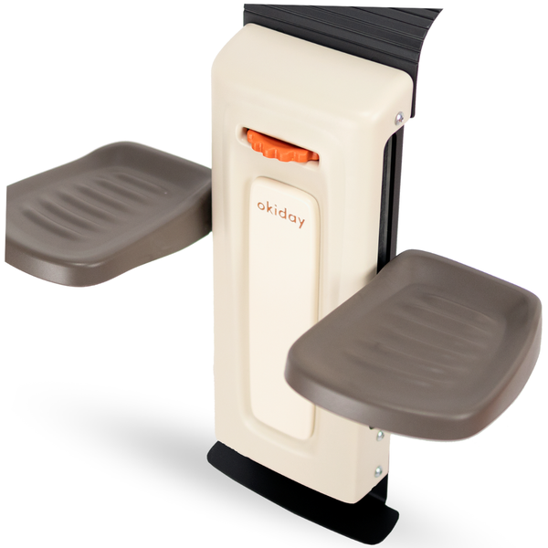 Dzięki smukłej sylwetce, podnóżki zajmują bardzo mało miejsca w pojeździe. Podparcia pod stopy można łatwo podnieść do góry, kiedy potrzebna jest dodatkowa przestrzeń. Wystarczy jeden ruch ręką.