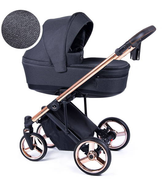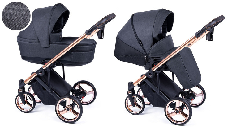 Aluminiowa rama waży zaledwie 8 kg, co w połączeniu ze skrętnymi kołami i miękkim zawieszeniem ułatwia manewrowanie nawet po wąskich i nierównych chodnikach. Ze względu na niską wagę, wjechanie pod górkę lub podbicie wózka jest jeszcze łatwiejsze - bez problemu pokonasz próg sklepu, krawężnik lub wjedziesz do autobusu. Rama do wyboru w trzech kolorach - miedzianym, czarnym lub beżowym.