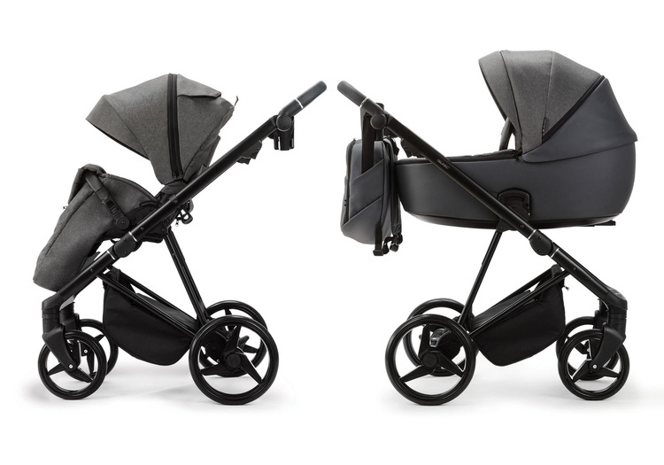 Wielofunkcyjny wózek dziecięcy BLANC posiada przestronną gondolę o nowoczesnym, asymetrycznym kształcie z miękką bawełnianą wyściółką i materacykiem z włókna kokosowego.