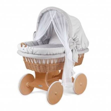 Waldin Wiklinowy Kosz Mojżesza z Materacem i Wyposażeniem Dębowy Szare Dodatki