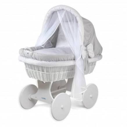 Waldin Wiklinowy Kosz Mojżesza z Materacem i Wyposażeniem Biały Szaro-Białe Dodatki