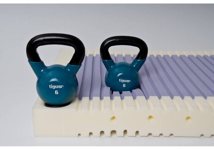 Materac ma na obwodzie pas usztywnionej pianki, który ułatwia wstawanie.