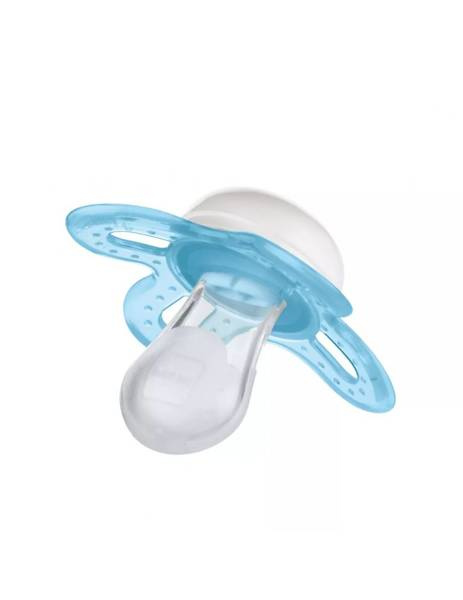 Symetryczna, dopasowana do sosny część ssąca jest o 60% cieńsza i 4 x bardziej elastyczna niż tradycyjne silikonowe smoczki. Dzięki przyssawce z silikonu SkinSoft smoczek czuje się bardzo dobrze w ustach dziecka. Dzięki otworom wentylacyjnym w zaokrąglonej tarczy jest on ponadto bardzo delikatny dla skóry dziecka.