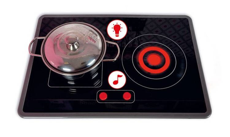 Duża drewniana kuchnia Candy Chic francuskiej marki JANOD sprawi mnóstwo radości każdemu dziecku. Pozwoli mu ona bezpiecznie uczestniczyć w codziennych czynnościach czy też rozwijać pasję gotowania. Urocza różowo-biała kuchnia na nóżkach posiada: okrągły, metalowy zlew, dwa „elektryczne” palniki, piekarnik, dolną szafkę, górną półkę i mikrofalę, na tylnej ścianie kuchni znajduje się różowy wieszak z 3 haczykami i zegar. Szykowi nadają kuchni połyskujące złote detale: pokrętła, uchwyty, wskazówki zegara i „grochy” na tylnej ściance kuchni. Do zestawu dołączone są ponadto akcesoria: metalowy garnek z pokrywką i chochlą oraz 3 kartoniki-produkty spożywcze. Kuchnia wyposażona jest w sygnał dźwiękowy oraz podświetlenie LED, imitujące efekt typowy dla „rozgrzanych” palników (baterie nie są załączone). Dzięki znacznym rozmiarom i wielu akcesoriom może się nią bawić jednocześnie więcej niż jedno dziecko. Zestaw zaprojektowano we Francji. Zapakowany jest w estetyczne, kartonowe pudełko. Idealnie nadaje się prezent. Akcesoria do zabawy w gotowanie marki JANOD wiernie odwzorowują swoje „dorosłe” odpowiedniki, wielkością dostosowane są jednak do dziecięcych rączek. Są bezpieczne i idealnie nadają się do uwielbianej przez dzieci „zabawy w dom”. Zostały starannie wykonane, mają przyjemny, ciekawy design, który rozwija poczucie estetyki, a ponadto rozwijają kreatywność i motorykę małej dłoni. Odtwarzanie sytuacji znanych z obserwacji pozytywnie wpływa również na wszechstronny rozwój dziecka, w tym kontakt z rówieśnikami i rozwiązywanie problemów.