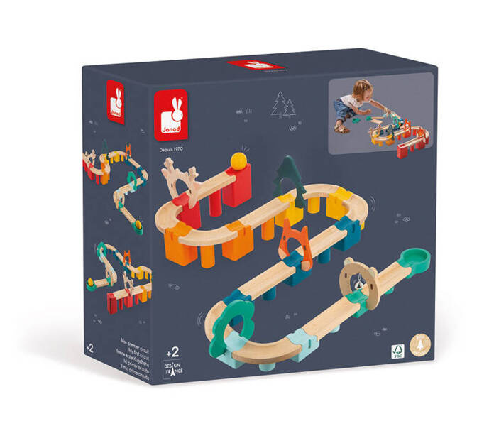 Drewniana układanka kulodrom francuskiej marki JANOD to idealna angażująca zabawka dla dzieci od 2. roku życia.