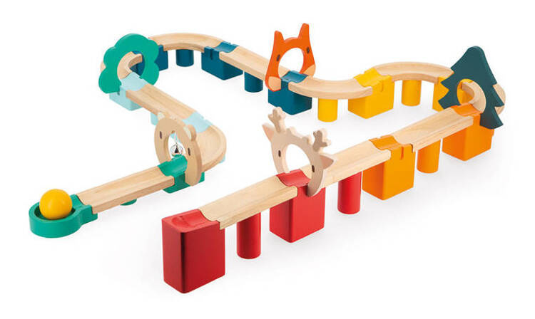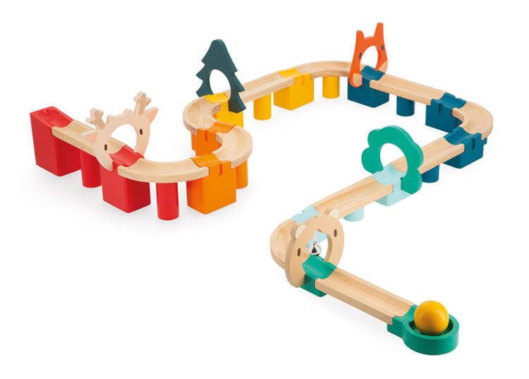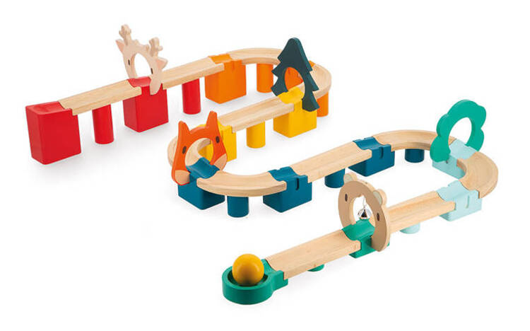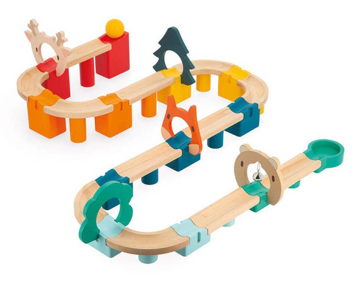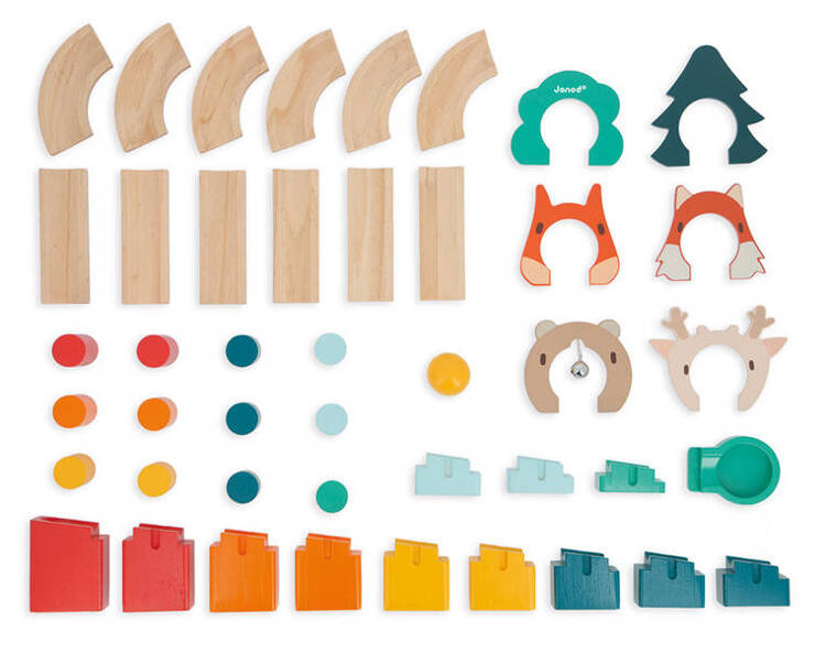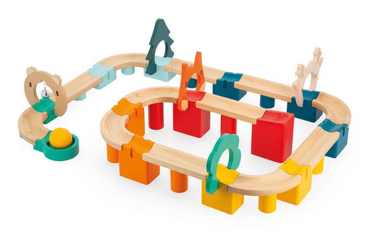 Z części da się zbudować wiele różnych torów do toczenia się drewnianej kulki (do zabawki dołączona jest instrukcja z propozycjami konstrukcji). Klocki są poręczne, kolorowe, łatwe do układania przez dziecko, a wyższe brzegi toru zapobiegają wypadnięciu kulki z drogi, dzięki czemu nie zgubi się w trakcie zabawy.