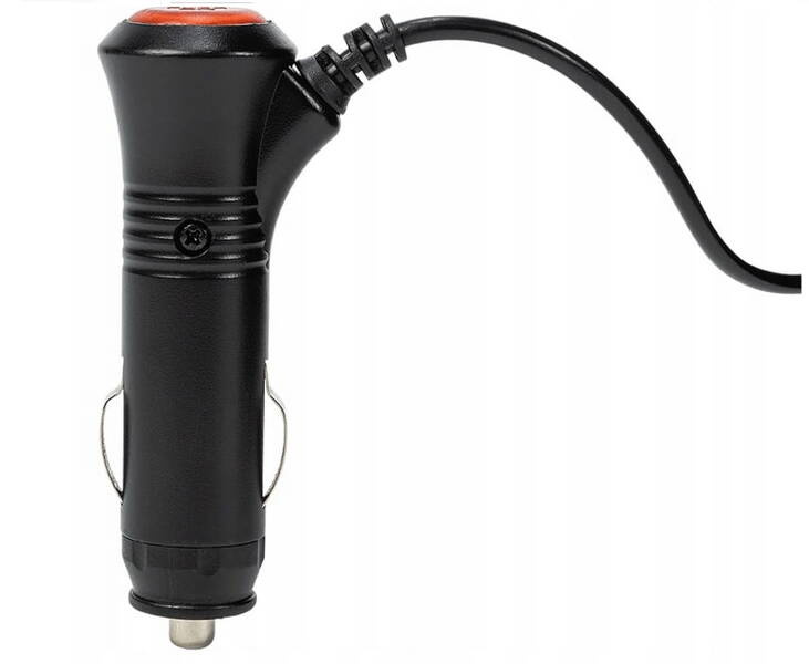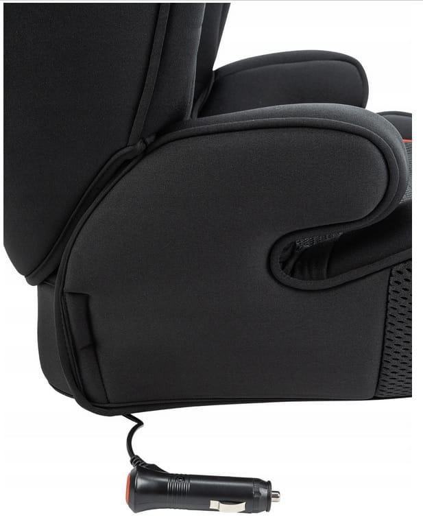 Obsługiwany przez zasilacz w samochodzie. Gdy tylko czerwony przycisk zostanie wciśnięty i dziecko usiądzie, fotelik zareaguje.
