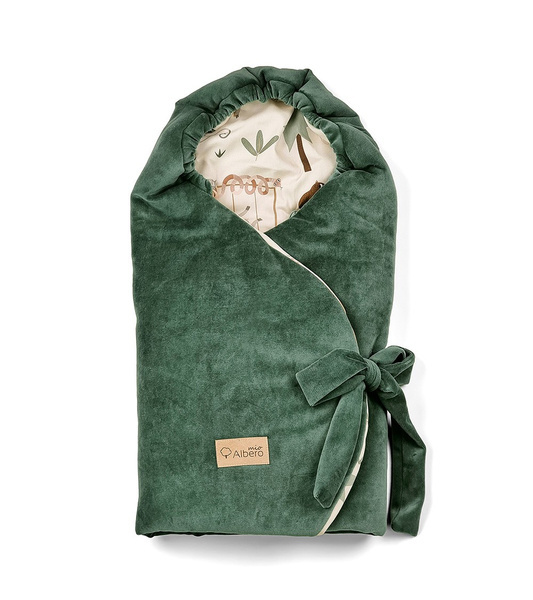 Otulacz posiada wycięcie na pasy 3 i 5 punktowe, dlatego sprawdzi się w fotelikach samochodowych, nosidełkach oraz jako śpiworek w gondoli wózka. Wszyty sznurek w tunelu w górnej części otulacza pozwala na stworzenie praktycznego kapturka, który ochroni dziecko przed niemiłym wiatrem. Otulacz posiada wszyte troczki, które pozwalają na zawiązanie ich na kokardę, dobierając w ten sposób odpowiedni rozmiar otulacza. Takie rozwiązanie nie obudzi również maluszka, kiedy będziemy rozwiązywać otulacz.