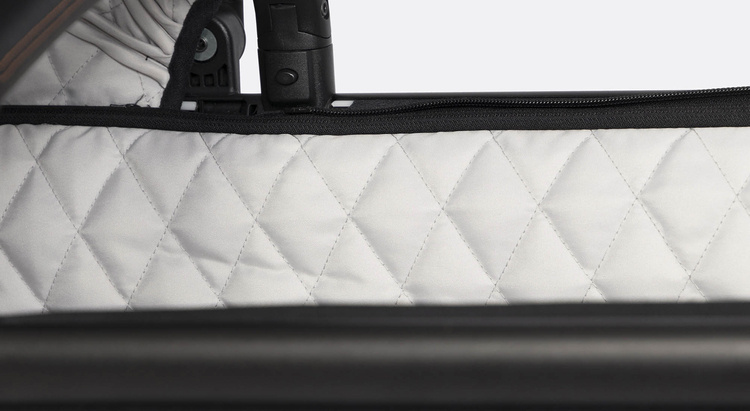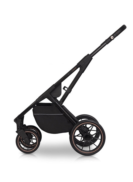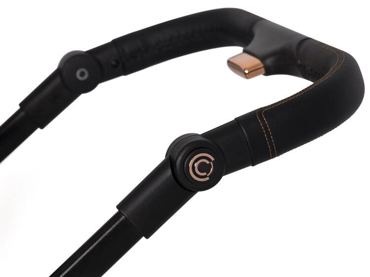 Model AXO STYLE został wzbogacony o regulację wysokości prowadnicy. Funkcja ta umożliwia wygodne prowadzenie wózka zarówno wysokim jak i niskim rodzicom. Przyciski regulacji prowadnicy zostały udekorowane eleganckimi miedzianymi sygnetami CAVOE, sprawiając, że nowe AXO STYLE nabrało dodatkowego blasku