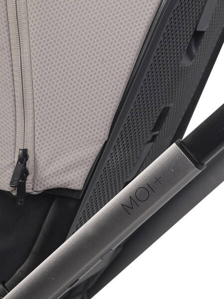 MOI+ jest innowacyjnym wózkiem dziecięcym łączącym niepowtarzalny styl z wszechstronną funkcjonalnością. Posiada teleskopowy system składania, dzięki któremu składa się do niezwykle małych rozmiarów, niezależnie od tego, czy siedzisko zamontowane jest przodem czy tyłem do kierunku jazdy. MOI+ po złożeniu nadal stoi na kołach, co ogranicza ryzyko przypadkowego ubrudzenia tapicerki, czy porysowania konstrukcji. Złożony wózek można również postawić w pionie i ciągnąć za sobą na kołach jak walizkę. Niska waga i kompaktowe rozmiary ułatwiają przenoszenie wózka.