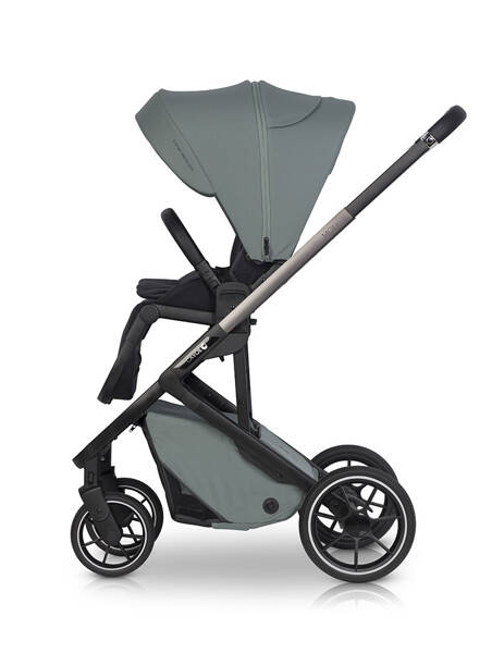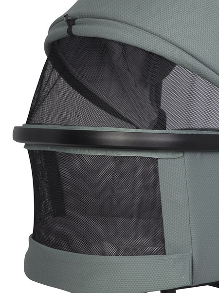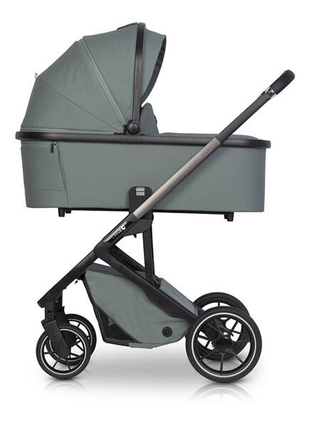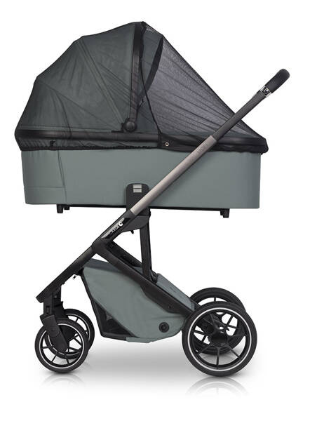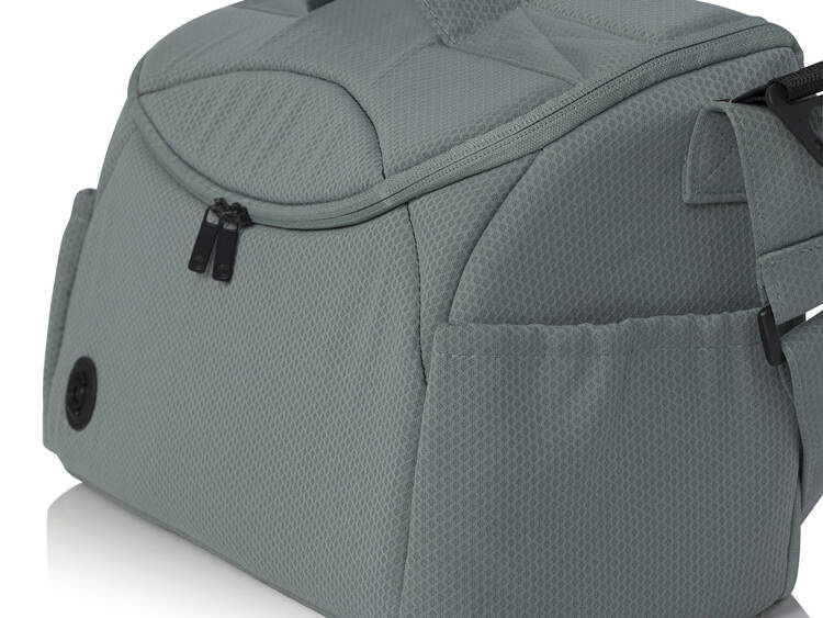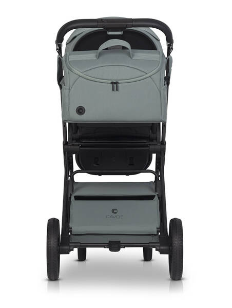 Duży koszyk na zakupy pomieści niezbędne bagaże, ale jeśli potrzebujesz dodatkowej przestrzeni, to możesz dokupić praktyczną torbę zawieszaną na prowadnicy wózka. Posiada ona formę eleganckiego kuferka, który po całkowitym rozsunięciu wszystkich suwaków, zmienia się w matę do przewijania dziecka.